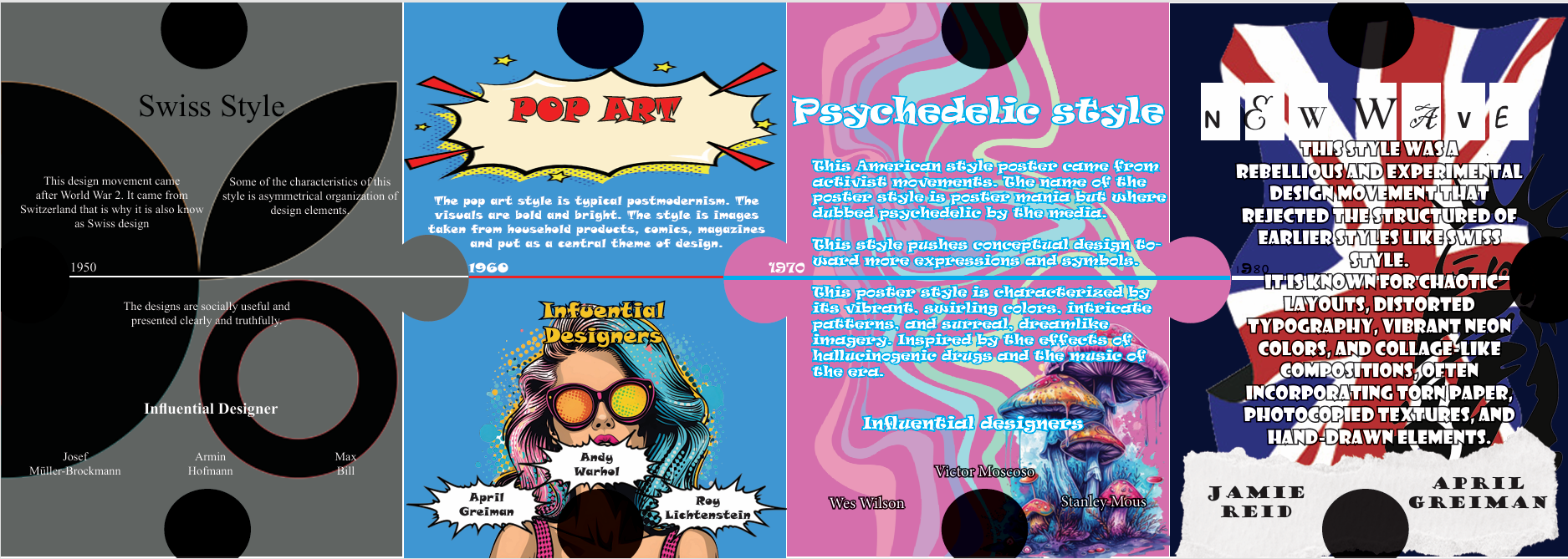 For this Graphic Design 4 assignment, we had to make a leaflet that tells the story of four styles in graphic design. The styles are from 1950-1980. It had to be an interesting infomercial for international typography style, pop art style, psychedelic poster style and new wave/punk style. I choose to make my leaflet as a puzzle that follow a timeline. Every puzzle is its own style.